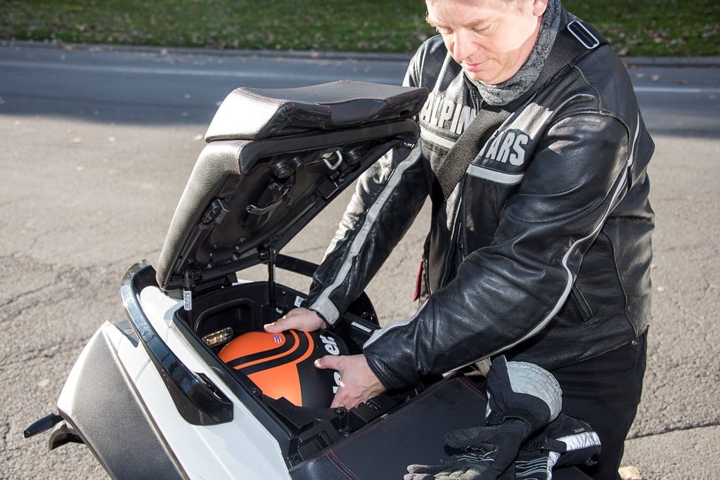 Le grand atout du Quattro : son accessibilité. Pour un tarif légèrement inférieur à celui du Piaggio, il se conduit avec un simple permis B (voiture), une première en Suisse pour ce type de véhicule, même si d’autres pays européens l’acceptaient déjà. Le MP3 500, lui, exige un permis moto A. En échange, il offre un moteur plus puissant, un espace de rangement plus vaste, un catalogue d’accessoires étoffé et la possibilité de connecter son smartphone (iOS ou Android) au scooter : navigation GPS, contrôle de la pression des pneus, affichage en temps réel de l’angle d’inclinaison, géolocalisation du revendeur… L’utilité de certaines fonctions reste discutable, mais l’écosystème s’enrichit rapidement. Et si le MP3 compte une roue de moins, il compense par une prise supplémentaire pour accessoires !